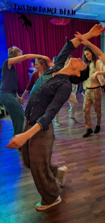 In my Fusion dancing classes I draw from all my movement sources: different partner dance styles (Contact Improvisation, Bal Folk, Blues) as well as from my circus background and education in the Alexander Technique, Wutao®, Systema and GFP®.